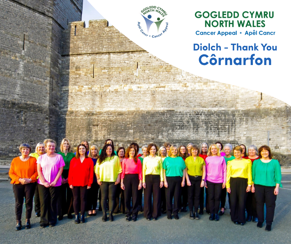 Thank you very much to Côrnarfon for collecting £1000 in aid of North Wales Cancer Appeal at your Christmas concert in 2025. The choir would also like to make their donation in memory of a dear member who passed away due to cancer this January. Thank you so much for donating to the North Wales Cancer Appeal.